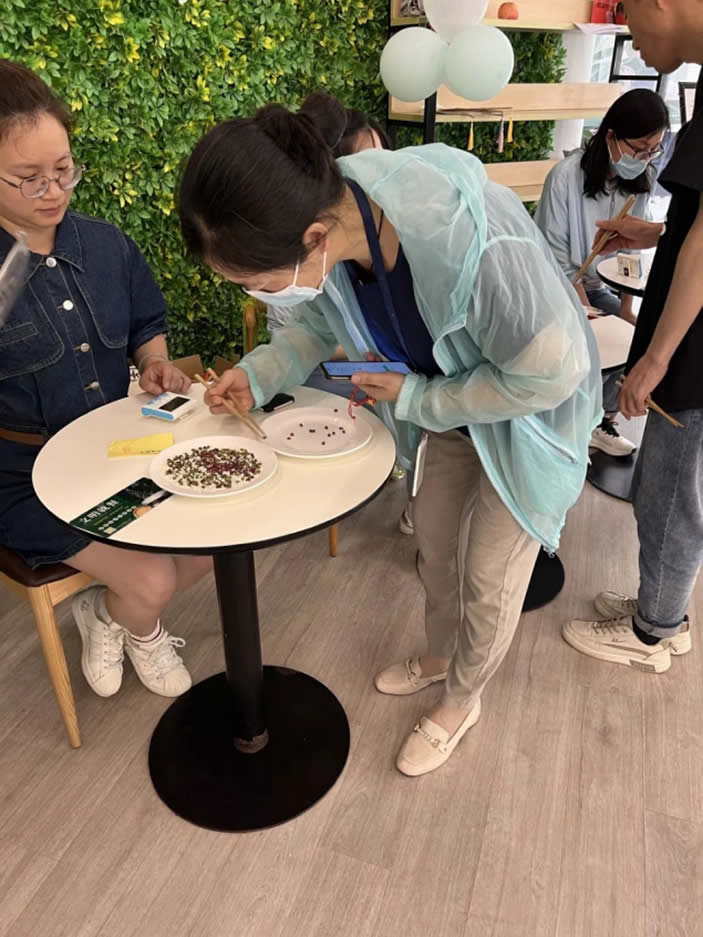 紅豆生南國,春來發(fā)幾枝。這蜜豆不是普通的蜜豆,是王維詩里面的蜜豆。夾蜜豆可是對手穩(wěn)有很高的要求的,打飯愛“手抖”的員工可要注意啦,手一抖將前功盡棄。夾蜜豆要領(lǐng):手穩(wěn)、氣平、心態(tài)好。大家還記得當(dāng)時(shí)自己夾了幾顆蜜豆嗎?而夾到最多蜜豆獲得蜜豆王稱號的就是收獲滿滿35枚小蜜豆的楊新悅。